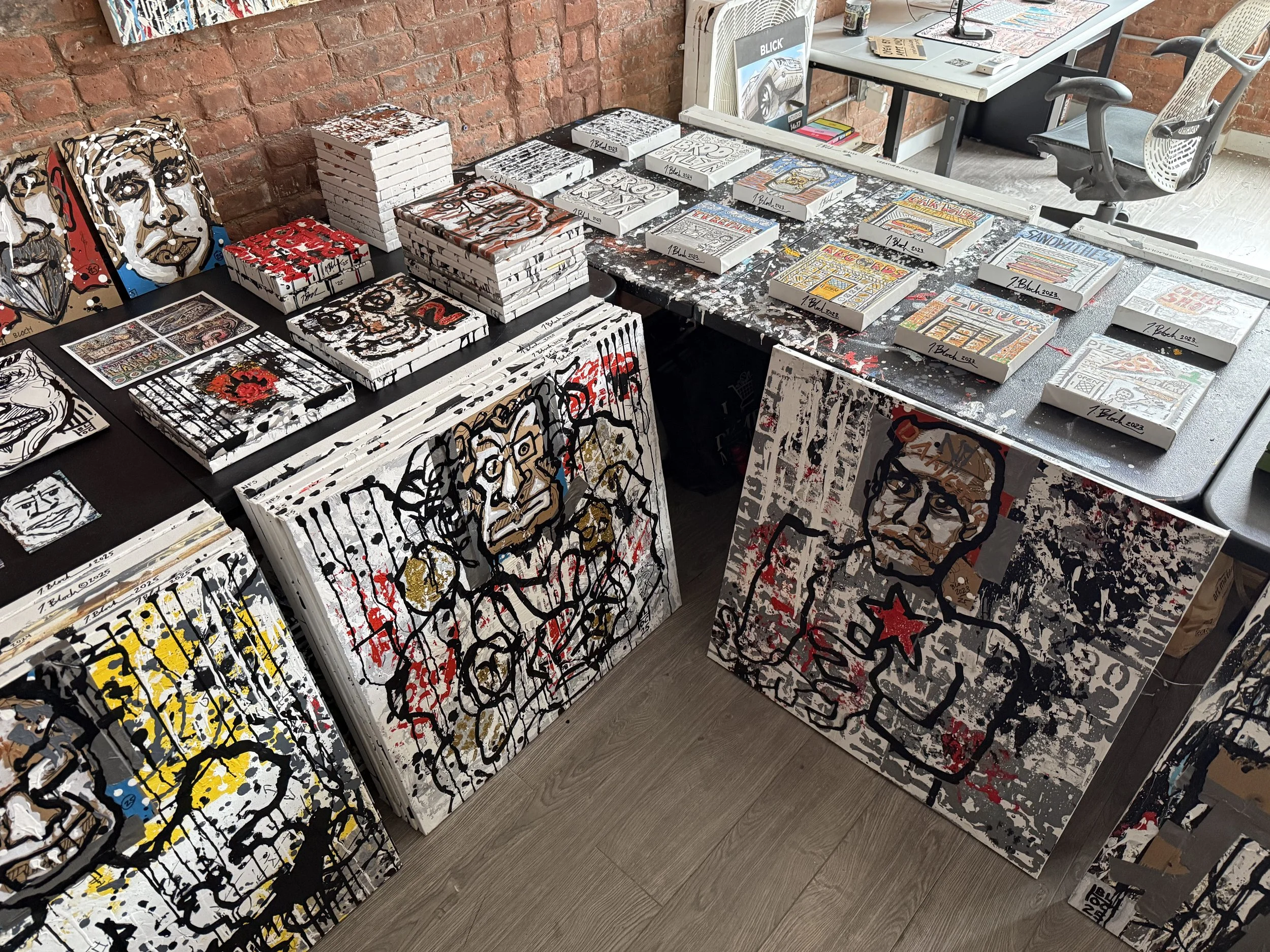 Joe Bloch is a Brooklyn-based artist creating raw, layered paintings rooted in street culture, abstraction, and industrial texture. Built by hand using paint, collage, cardboard, and found materials, each piece develops through a physical, intuitive process of layering, removal, and reworking—resulting in surfaces that carry depth, history, and unpredictability.